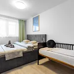 寝室1室のBnb Matadorka Comfort Suite ブラチスラヴァは都市の景色を見渡せる場所にあり,Bunker BS-8から徒歩で5分の場所にあります. 70m^2のアパ-トは,WiFiなどのモダンな設備や,車でお越しの旅行者向けの無料の専用駐車場などの必需品を提供しています.